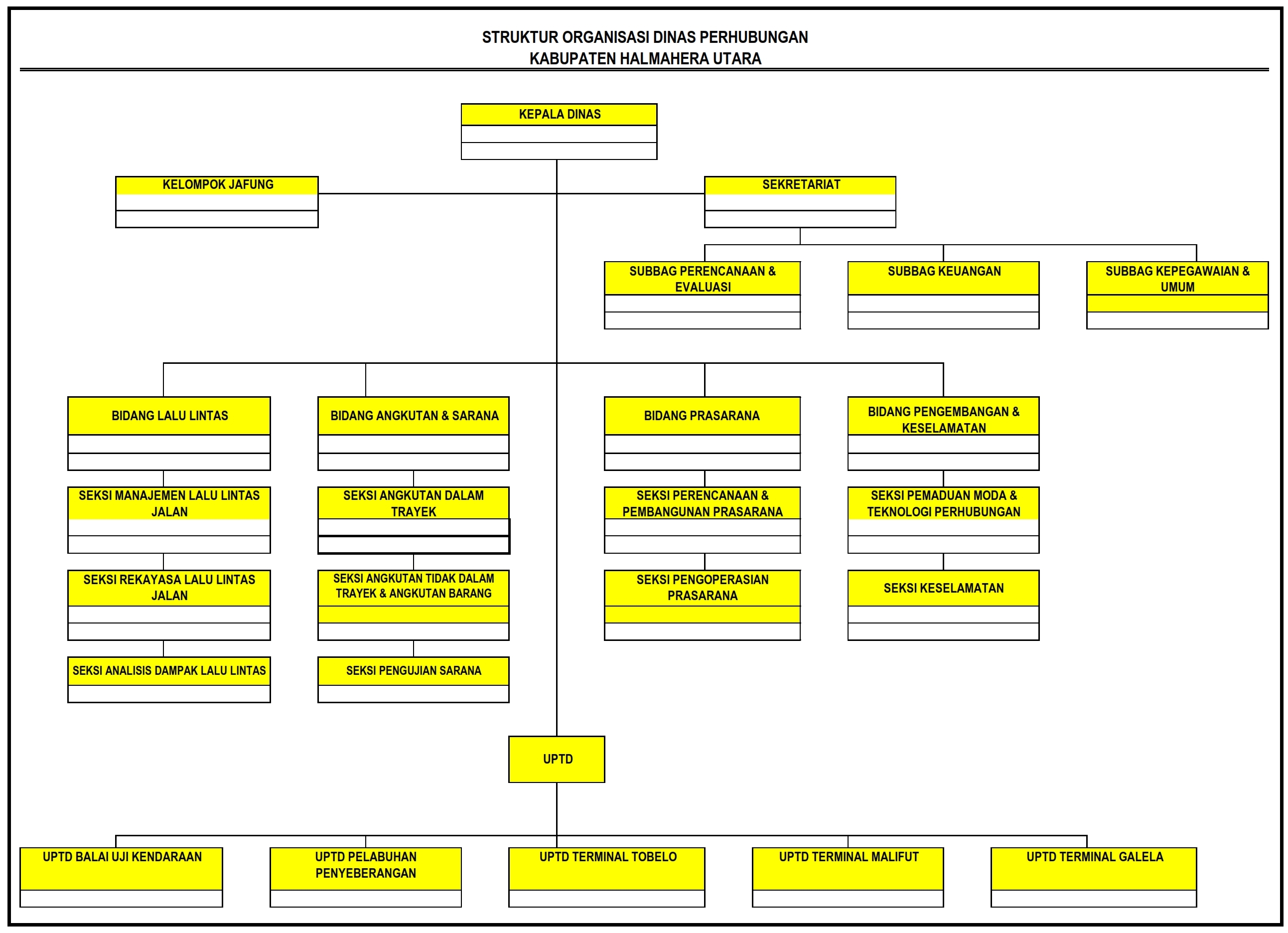 Dinas Perhubungan merupakan unsur pelaksana Pemerintah daerah yang dipimpin oleh seorang Kepala Dinas, yang berada dibawah dan bertanggung jawab kepada Kepala Daerah melalui Sekretaris Daerah.